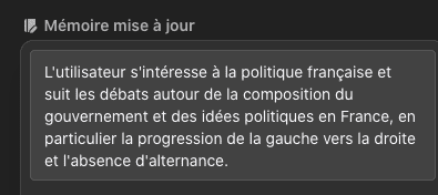 Prenons un exemple personnel, en discutant avec ChatGPT de la nomination d’un nouveau Premier ministre, voici soudainement ce qu’elle a décidé de mémoriser :