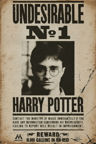 Affiche concernant Harry Potter lorsque le Seigneur des Ténèbres (Lord Voldemort) est au pouvoir