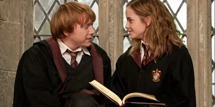 Ron et Hermione, une amitié qui se transforme en regards et petits sourires,